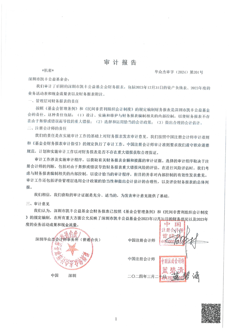 凯丰公益基金会 ▎2023年第三方审计报告披露