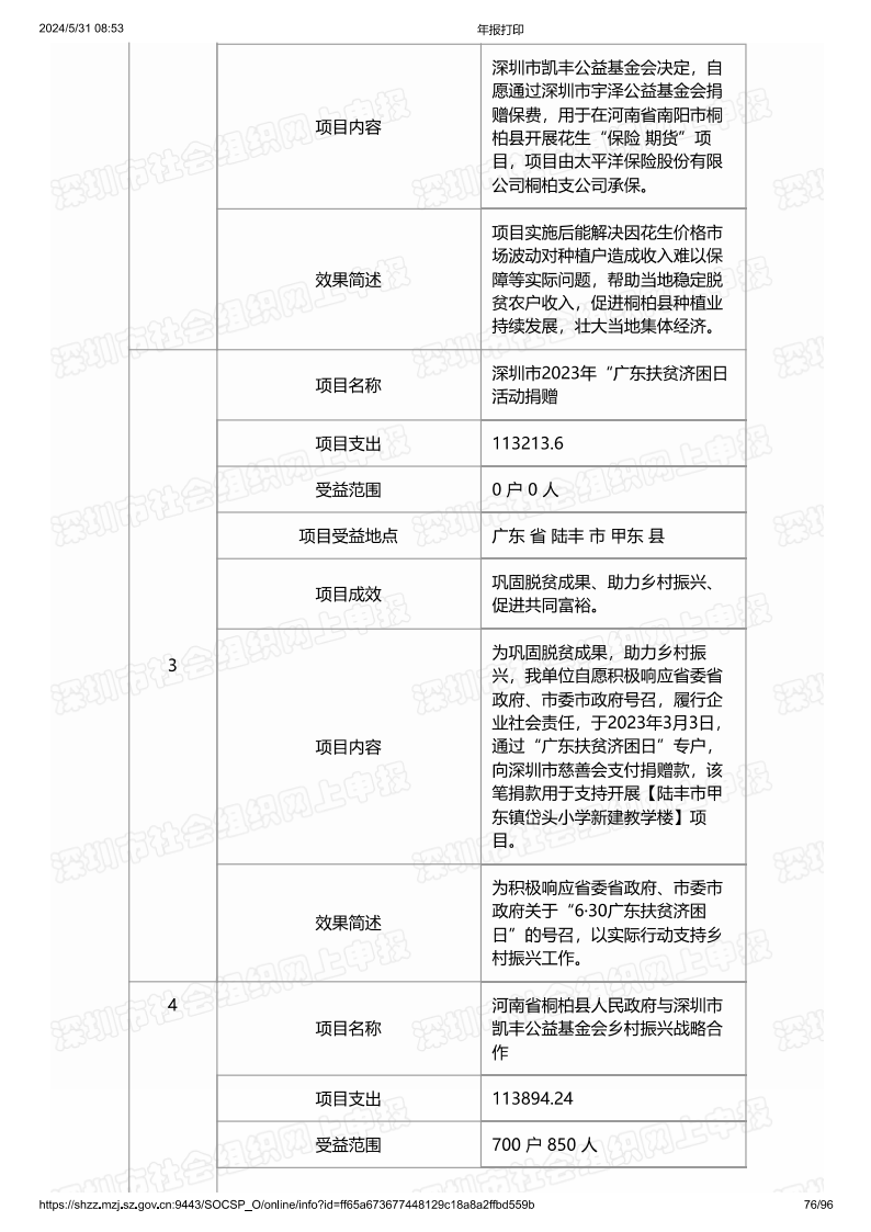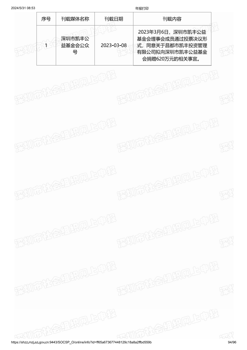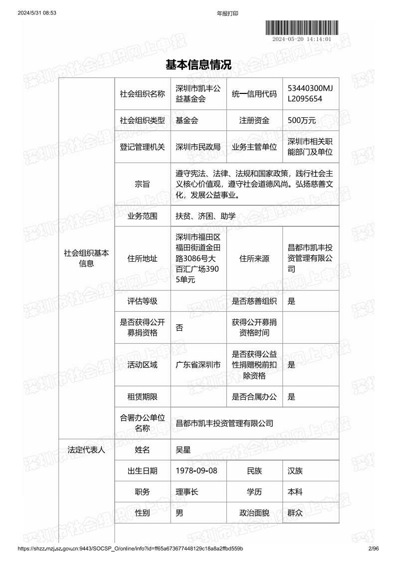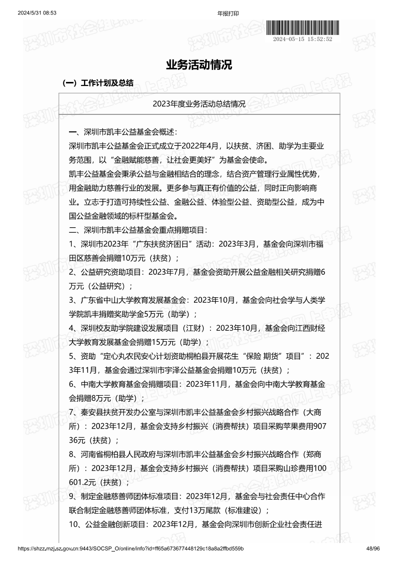 凯丰公益基金会 ▎深圳市凯丰公益基金会2023年社会组织年报披露